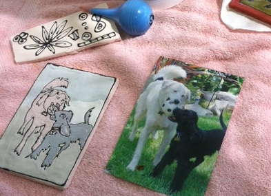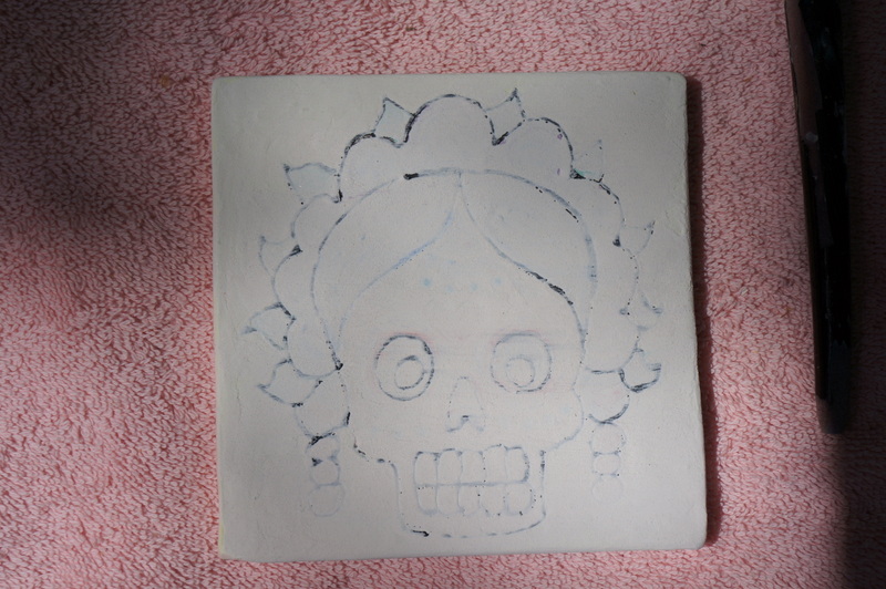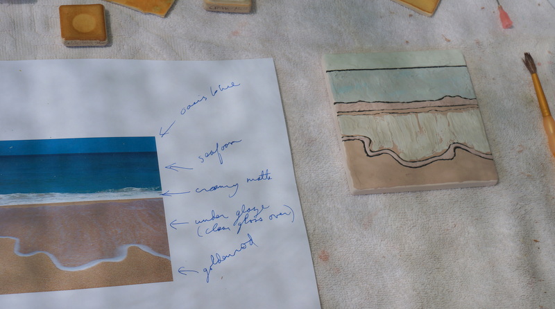 In about 2 weeks, we’ll fire the tiles then pop over to TJ’s to deliver some special art work to our new friends–Sonny, Jeannie, Sherry, Bobbi and Alexa.